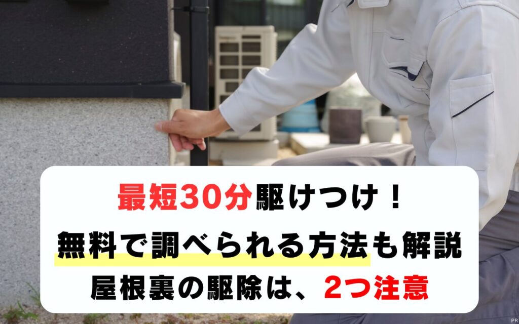 害獣プロテックなら、最短30分で駆け付けしてくれて、何がいるかの調査や見積もりまでなら完全0円で行ってくれますよ