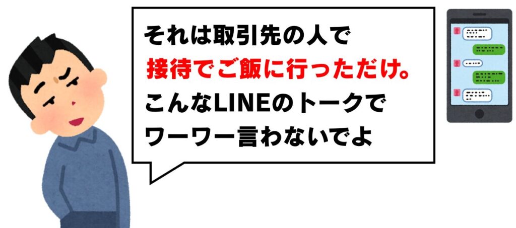 例えば、『昨日は激しかったね』のような黒確定のLINEでも、何が激しかったのかが分からないので、肉体関係を証明することができません。